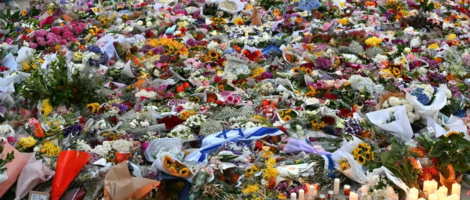 Yes, I can grieve for those who died last Sunday, but it is a question of recognition, of keeping things in proportion. Here is my admittedly simplified formula: I take the 15 victims at Bondi Beach and divide them by the 71,000 deaths in Gaza as of this writing. I get a fraction of 0.00021225714, and this is the extent of my grief for the 15.